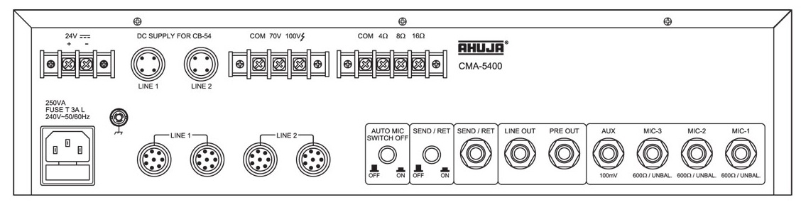 4Ω, 8Ω, 16Ω, 70V & 100V |